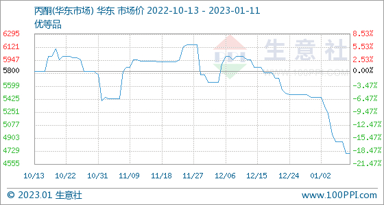 1月11日生意社丙酮(华东市场)基准价为4700.00元/吨