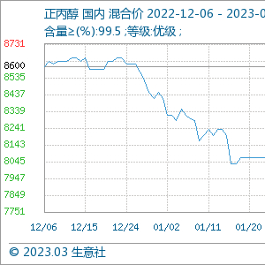 3月6日生意社正丙醇基准价为8000.00元/吨