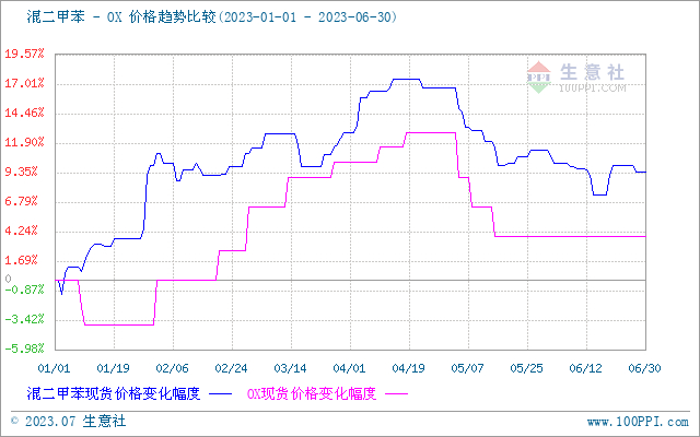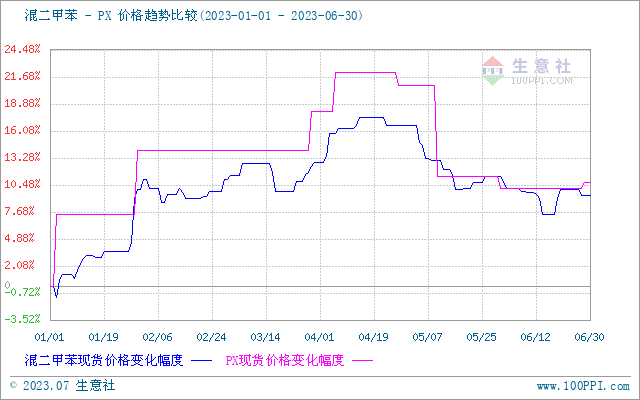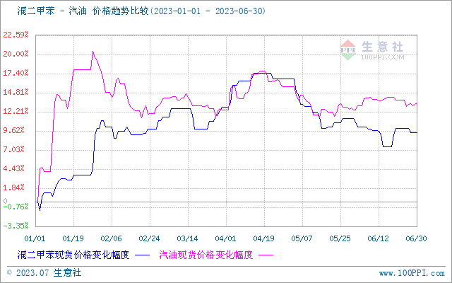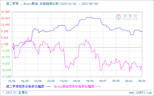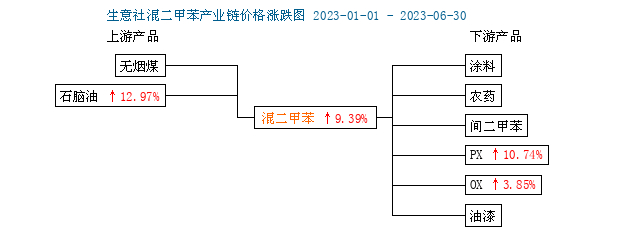 2023年上半年混二甲苯与原油走势波动大体一致,成本面影响占比较重。