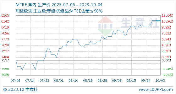 10月4日生意社MTBE基准价为8162.50元/吨