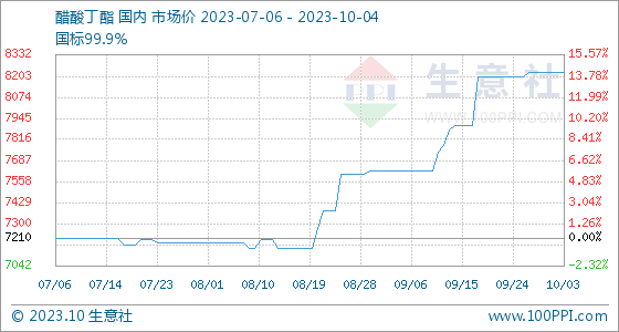 10月4日生意社醋酸丁酯基准价为8225.00元/吨