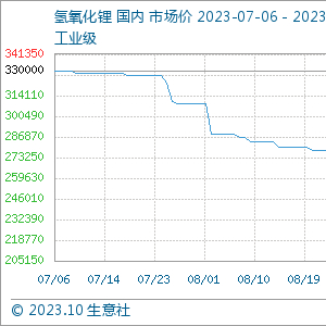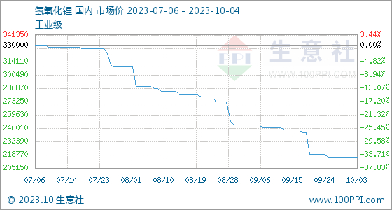 10月4日,生意社氢氧化锂基准价为216500.00元/吨,与本月初持平。