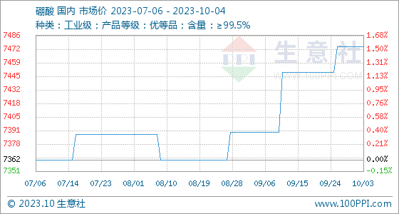 10月4日,生意社硼酸基准价为7475.00元/吨,与本月初持平。