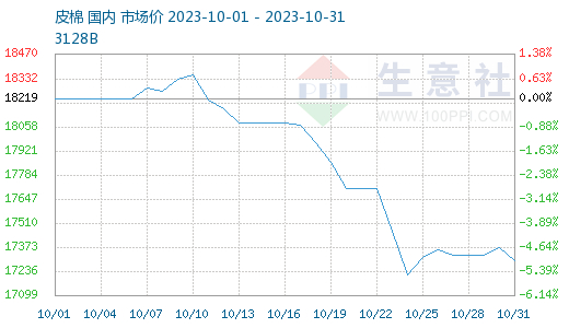 成本方面:棉花行情大幅下跌,成本支撑不足。随着新疆地区大规模采摘,新棉上市,供应端增加,加上十月传统旺季需求不佳,持续负反馈下,棉花行情高位下跌。据生意社商品行情分析系统,10月31日3128B级皮棉现货价格在17297元/吨,较月初下跌5.06%。