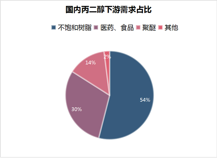 需求方面:2023年,丙二醇市场的整体需求表现一般,丙二醇下游主要消费领域给予丙二醇的支撑不足,下游不饱和树脂行业开工率偏低。丙二醇主力下游UPR在2023年的行业占比亦有所下降,受终端玻璃钢、房地产等领域需求弱势的牵制,UPR行业整体产能利用率偏低。2024年,随着终端下游市场不断复苏,丙二醇下游弹性体聚醚市场新装置投产,终端应用市场的防水涂料、胶黏剂等领域的市场需求将有所提振,因此,预计2024年,丙二醇市场下游需求整体将有所增长。