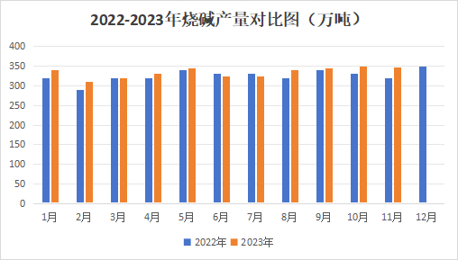 从供应方面看,依然呈现较为宽松局面。国家统计局数据显示,2023年1-11月烧碱累计产量为3727万吨,同比增加93万吨,增幅2.56%。据不完全统计,2023年我国烧碱产量较去年有所增加,一方面国内烧碱产能增加明显,产量增加,另一方面2023年国内产能利用率提升,开工率相对较高。