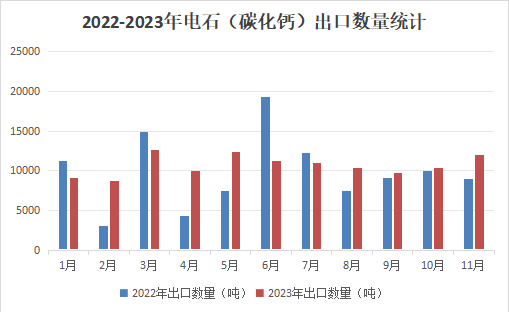 从进出口来看:2023年1-11月我国电石(碳化钙)累计出口量为11.76万吨,较去年同期10.81增加0.95万吨,同比增加8.79%。其中出口数量最大的目的地是印度,出口量为3.87万吨,占出口总量的32.91%。出口金额为18467.61万元,平均出口金额为4771.99元/吨。2023年我国电石(碳化钙)进口量基本没有。