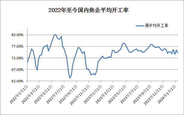 目前焦化企业的开工情况受外部影响较小,焦炭的实际产量与产能的关联较低,目前开工率主要跟随焦化企业自身盈利情况进行波动。从以上2022至今焦企开工率变化图可以很直观的感受到,焦企目前对于开工率的调整还是非常频繁的,但整体还是在70%-80%内的区间内进行调整,幅度不会太大,尤其是对待减产比较慎重。从历年焦炭产量对比图也可以比较直观的发现2023年焦炭整体生产是比较平稳的,各个月份之间差距不大。主要因为23年钢厂增产积极,对焦炭的需求量一直比较稳定。因此目前焦炭的生产情况还是主要看下游钢厂的需求,焦炭实际产量与钢厂高炉开工情况较为关联。据国家统计局数据最新数据显示2023年焦炭产量49260万吨,同比增长3.6%,目前焦炭供应整体比较稳定,预计24年在没有明显外部因素影响下,焦炭的供应量也将偏稳。