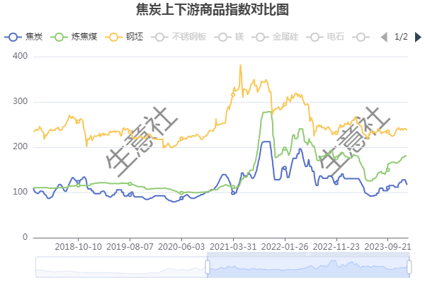 进入9月后焦煤市场率先回暖,焦企心态受到提振,同时期在下游成材市场“金九银十”的旺季提振下连续多轮提涨,至10月末成材市场表现不佳叠加原料焦煤价格回落,焦炭市场短暂回落了一轮。11月中随着焦煤市场再次走高以及下游钢厂积极入市补库,焦炭市场继续连涨三轮。