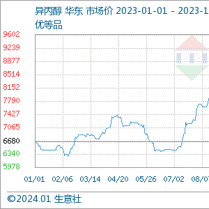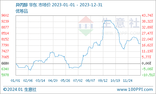 2023年的行情发展来看,1-4月异丙醇处震荡上涨阶段;4-6处于下跌阶段;7-9上涨阶段;10-12价格震荡下跌。