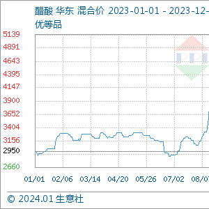 窄幅震荡(1-7月份),此阶段醋酸企业开工高位稳定,市场供需相对平衡,醋酸价格窄幅震荡盘整。