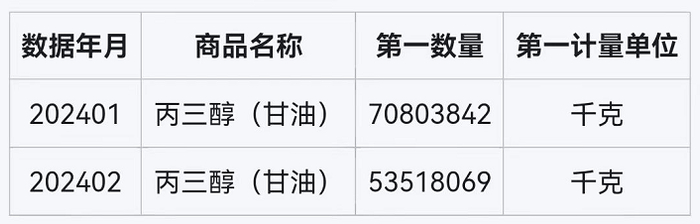 据海关数据统计,2024年1月中国甘油进口量为70803.842吨,2024年2月中国甘油进口量为53518.069吨,环比下降约24.4%。