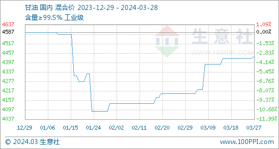 生意社:3月国内甘油(丙三醇)市场价格小幅上涨