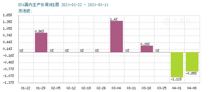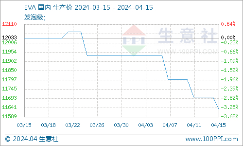 近期国内EVA市场行情逐渐走低,现货价格陆续调降。据生意社商品行情分析系统显示,截止4月15日,国内EVA基准价在11633.33元/吨,价格水平较月初涨跌幅-2.51%。