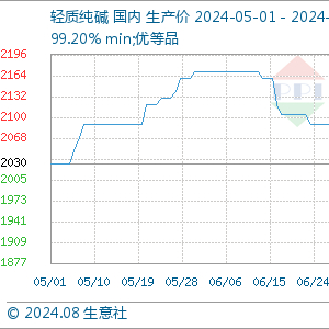据生意社商品分析系统显示,本月纯碱价格持续下行。供应端,纯碱开工率维持高位,市场库存量充足,企业产销一般,库存不断累积;需求端,终端行情延续弱势,下游采买多按需跟进,市场交投氛围欠佳,供需博弈下,纯碱价格弱势下跌。截止2024年7月31日,华东地区纯碱价格延续下调,轻质纯碱主流市场报价1750-2000元/吨左右,华中地区纯碱价格弱稳,轻质纯碱主流市场报价1700-1850元/吨左右。