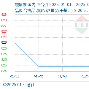 据生意社商品行情分析系统,1月6日国内硫酸铵市场均价为828元/吨,较1月1日国内硫酸铵市场均价826元/吨,国内硫酸铵市场价格上涨0.20%。