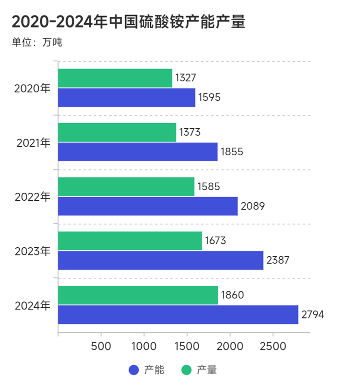 综上所述,2024年国内硫酸铵市场行情涨跌互现,整体震荡运行。随着我国农业需求的快速增长,硫酸铵市场规模的提升,以及环保法规政策的加强,我国硫酸铵生产能力和生产工艺也在不断改进和创新,推动硫酸铵行业向更加环保和高效的方向发展。预计2025年国内硫酸铵行业继续保持增长势头,市场行情稳中向好运行,产能产量和出口量将会继续增长。
