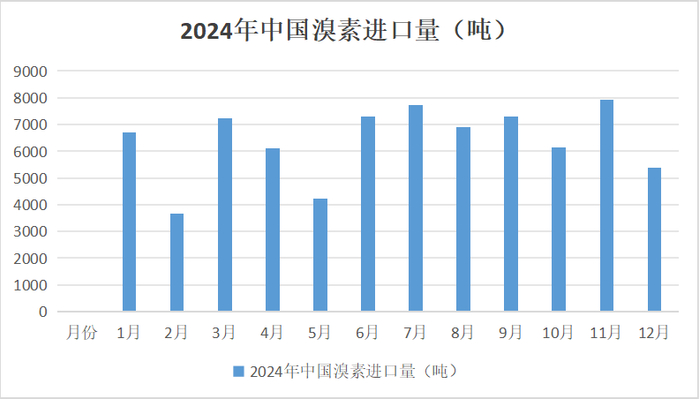 进出口方面:目前我国国内溴素市场自给率不高,溴素严重依赖进口,我国溴素自给率近年来维持较低水平,但溴素进口依赖度高,溴素产业链供给受制于以色列、美国及印度等国家。海关数据显示2024年我国溴素年度进口量接近8万吨。