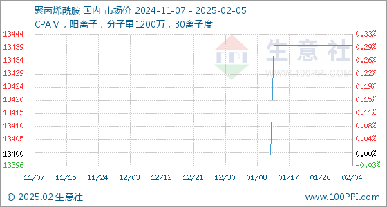2月5日生意社聚丙烯酰胺基准价为13440.00元/吨