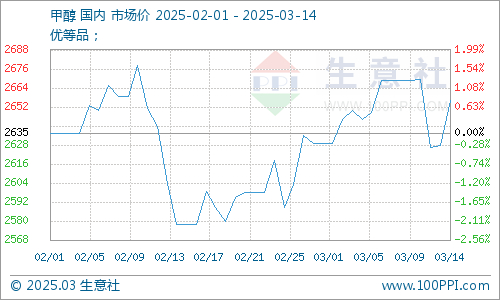 成本面:国内甲醇市场波动整理。周初,部分贸易商补货,生产企业限量出货,推动内地甲醇市场上涨,但涨后下游观望为主,采买意愿一般,对市场形成压制,市场商谈氛围随之走弱,价格偏弱运行。3月14日,生意社甲醇现货价格在2628.33元/吨,较周初下降了0.03%。液氯需求好转,周内山东液氯先跌后涨。