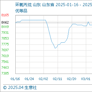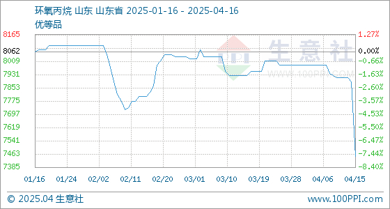 4月16日,生意社环氧丙烷基准价为7450.00元/吨,与本月初(7987.50元/吨)相比,下降了-6.73%。