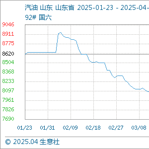 4月23日,生意社汽油基准价为7803.50元/吨,与本月初(8041.80元/吨)相比,下降了-2.96%。