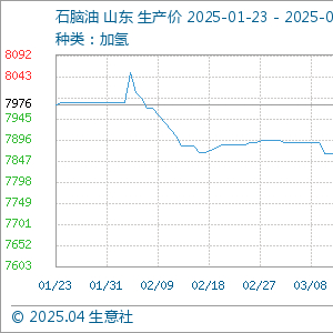 4月23日,生意社石脑油基准价为7644.00元/吨,与本月初(7834.00元/吨)相比,下降了-2.43%。