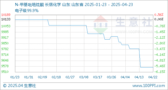 4月23日,生意社N-甲基吡咯烷酮基准价为9566.67元/吨,与本月初(9866.67元/吨)相比,下降了-3.04%。