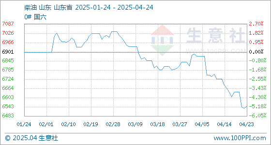 4月24日生意社柴油基准价为6549.17元/吨