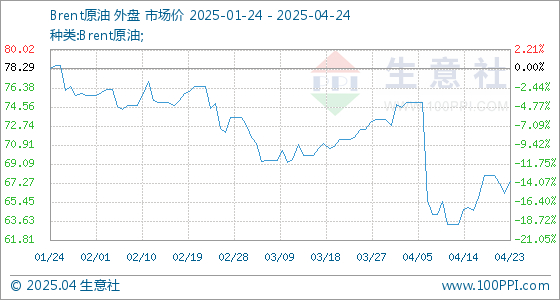 4月24日生意社Brent原油基准价为67.44美元/桶