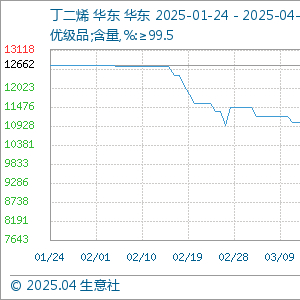 4月24日生意社丁二烯基准价为8453.33元/吨