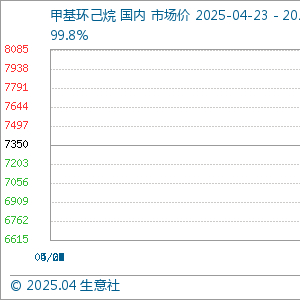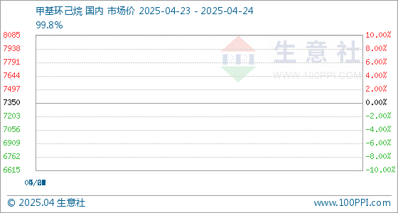 4月24日生意社甲基环己烷基准价为7350.00元/吨