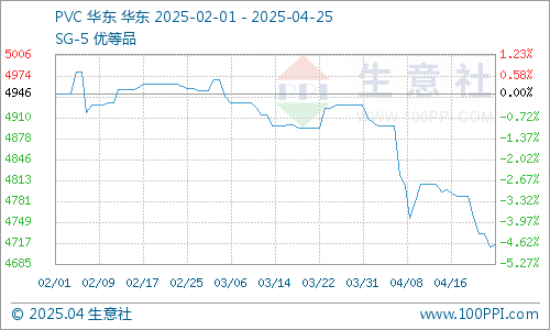 上游电石方面,本周(4.21-25),电石市场持稳为主,据生意社商品分析系统,本周涨跌幅为0。价格仍在相对低位,对PVC支撑有限。