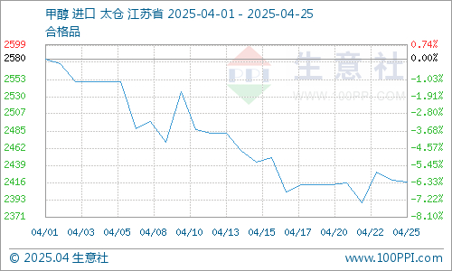 上游甲醇行情区间震荡。4月19日至25日,国内市场均价自2413.75元/吨上调至2417.50元/吨,整体涨幅0.16%。内地甲醇下游近期存节前备货需求,对市场氛围存一定支撑,企业出货顺畅,但对高价仍存观望心态,市场整体价格变动有限。