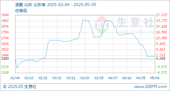 5月5日生意社液氨基准价为2436.67元/吨