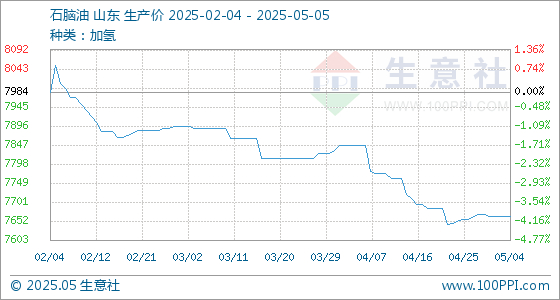 5月5日,生意社石脑油基准价为7664.00元/吨,与本月初持平。