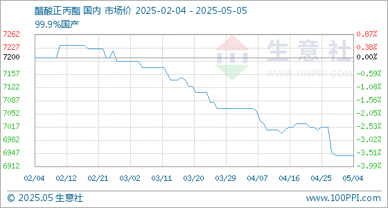 5月5日生意社醋酸正丙酯基准价为6941.67元/吨