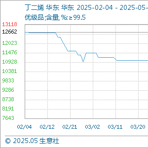 5月5日,生意社丁二烯基准价为9066.67元/吨,与本月初持平。