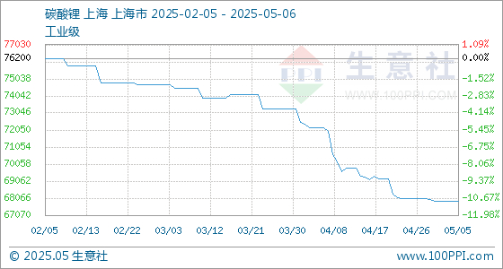 5月6日生意社碳酸锂(工业级)基准价为67900.00元/吨