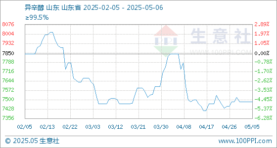 5月6日,生意社异辛醇基准价为7483.33元/吨,与本月初持平。