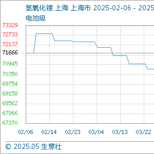 5月7日生意社氢氧化锂(电池级)基准价为67866.67元/吨