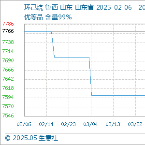 5月7日,生意社环己烷基准价为7566.67元/吨,与本月初持平。