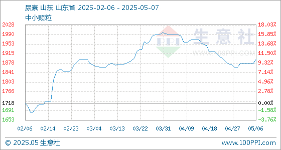 5月7日,生意社尿素基准价为1893.33元/吨,与本月初(1875.00元/吨)相比,上涨了0.98%。