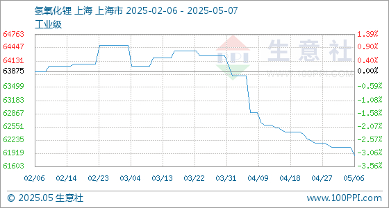 5月7日生意社氢氧化锂(工业级)基准价为61866.67元/吨