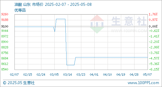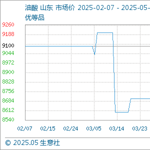 5月8日生意社油酸基准价为8700.00元/吨