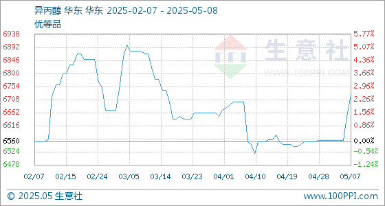 5月8日生意社异丙醇基准价为6725.00元/吨