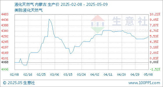 5月9日生意社液化天然气基准价为4294.00元/吨