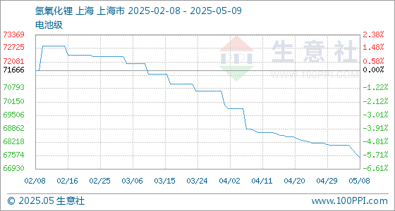 5月9日生意社氢氧化锂(电池级)基准价为67466.67元/吨