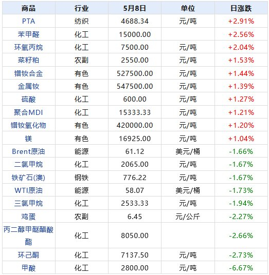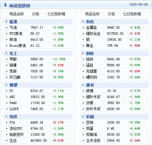 生意社:大宗商品数据每日题材(2025年5月9日)
