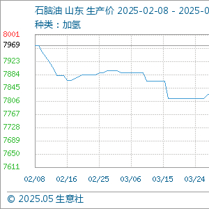 5月9日,生意社石脑油基准价为7664.00元/吨,与本月初持平。